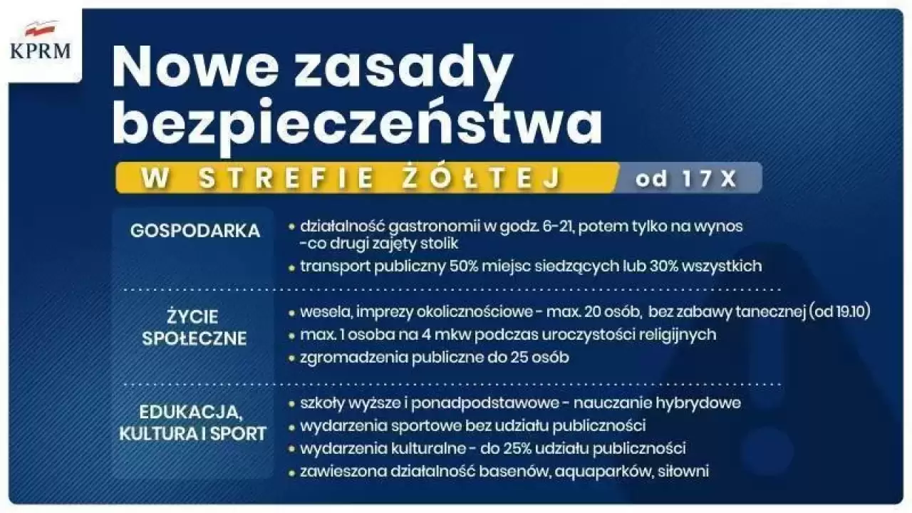Strefa żółta (cały kraj, z wyjątkiem powiatów ze strefy czerwonej):