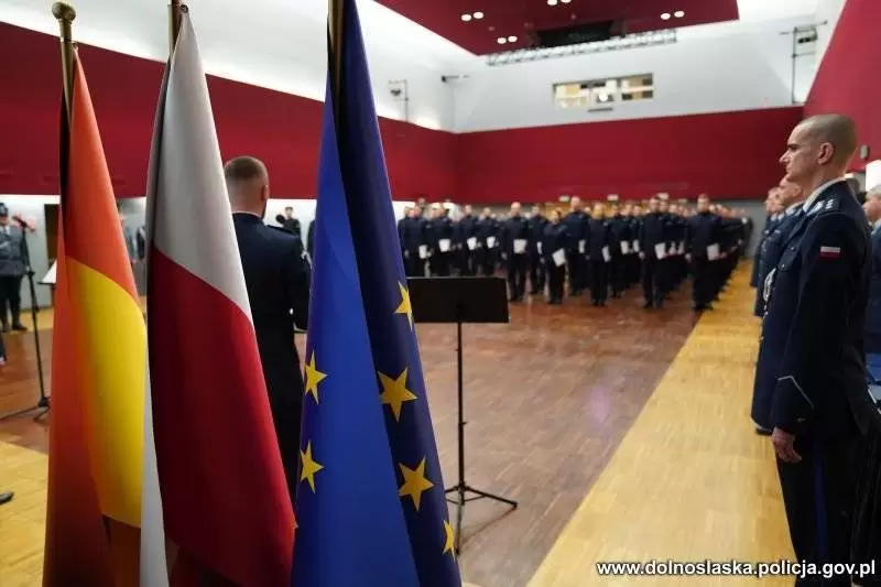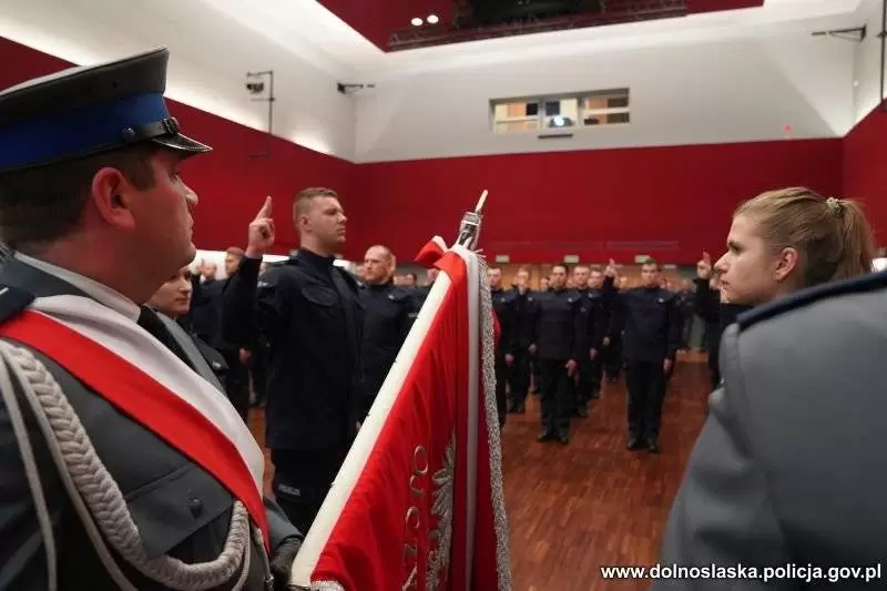 Garnizon dolnośląski Policji przyjął w swoje szeregi kolejnych nowych funkcjonariuszy. Słowa roty ślubowania wypowiedzieli oni podczas uroczystej zbiórki, którą zorganizowano na terenie 4. Regionalnej Bazy Logistycznej przy ul. Pretficza we Wrocławiu.