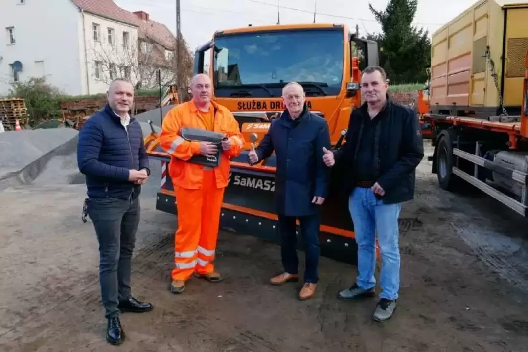 Powiatowa służba drogowa wzbogaciła się dzisiaj o samochód ciężarowy marki MAN wraz z pługiem odśnieżającym. Nowy pojazd będzie w użyciu przez cały sezon.