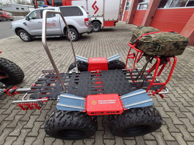 Quad charakteryzuje się bardzo dobrymi właściwościami jezdnymi, umożliwiając szybkie i bezpieczne dotarcie do miejsc niedostępnych dla standardowych pojazdów ratowniczo-gaśniczych, takich jak tereny leśne, podmokłe, zalewowe czy obszary objęte klęskami żywiołowymi. W połączeniu z przyczepką ewakuacyjną pojazd ten pozwala na sprawną ewakuację osób poszkodowanych oraz transport sprzętu ratowniczego, co bezpośrednio przekłada się na skrócenie czasu udzielania pomocy.