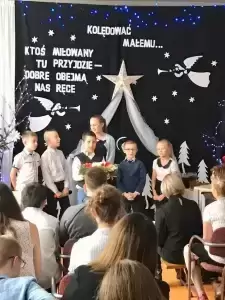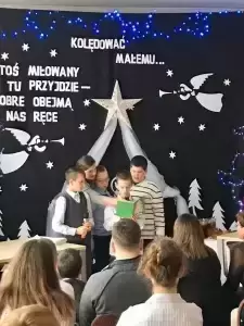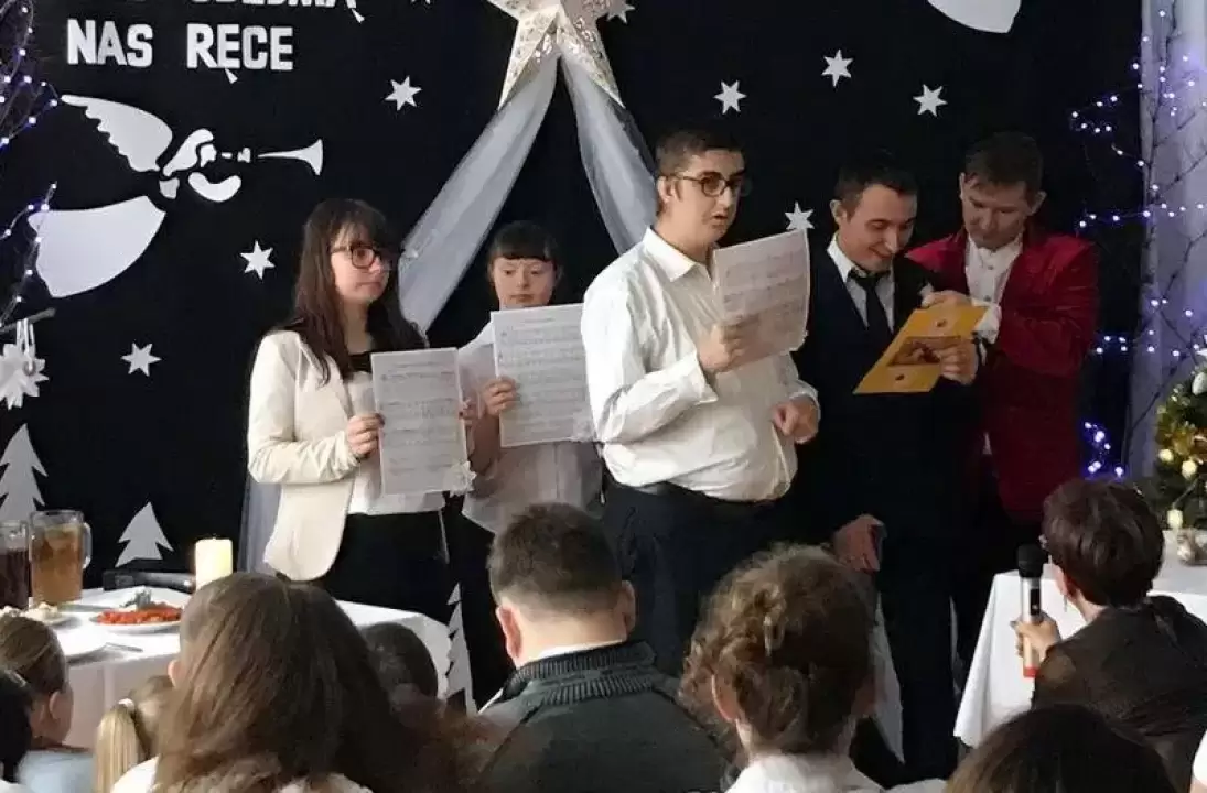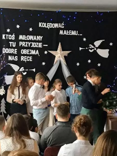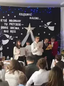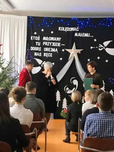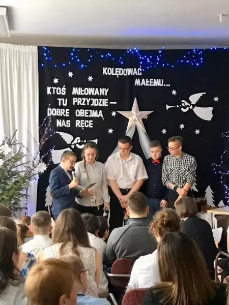 Przedstawiciele Szkoły Branżowej przypomnieli o najważniejszych wigilijnych potrawach. Największe poruszenie jednak wśród obecnych na sali, sprawili uczniowie przebrani za kolędników. A o magii świąt przypominały nam wspólnie śpiewane kolędy w nastrojowej scenerii.