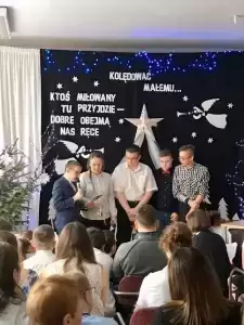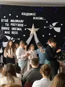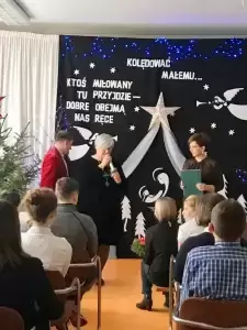 Po części artystycznej p. dyrektor Lidia Walerych wraz z proboszczem parafii św. Andrzeja Wiesławem Pindelem i innymi zaproszonymi gośćmi, przekazała świąteczne życzenia oraz zaprosiła na wspólną wigilię.