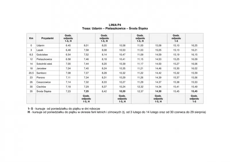 LINIA P4 Udanin – Pielaszkowice – Środa Śląska