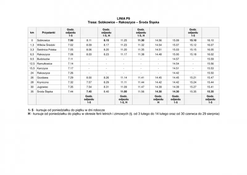 LINIA P9 Sobkowice – Rakoszyce – Środa Śląska
