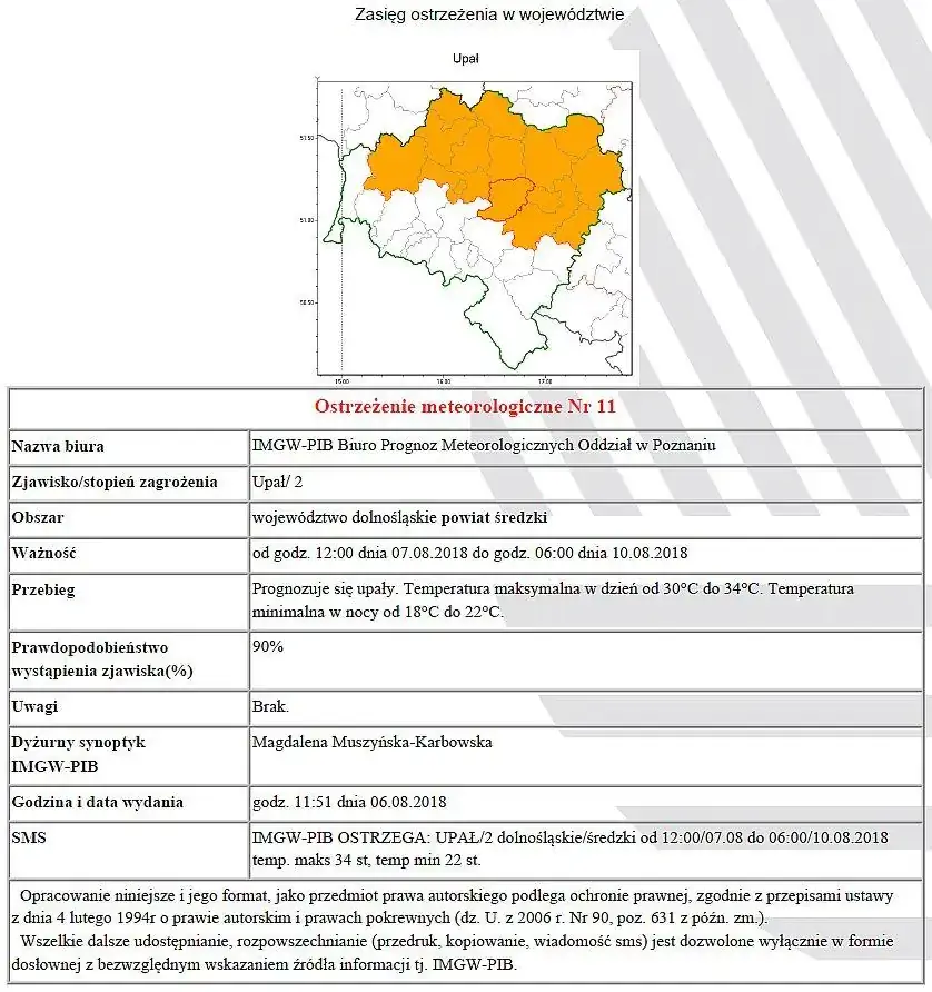 Instytut Meteorologii i Gospodarki Wodnej wydał dziś komunikat informujący o upałach na naszym terenie.
