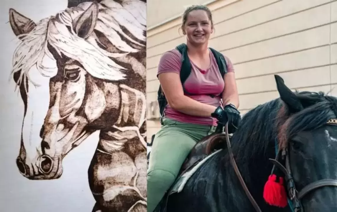 Malowanie ogniem to, mówiąc bardziej profesjonalnie - pirografia. Coraz mniej popularna sztuka wypalania różnych grafik na drewnie za pomocą specjalnego urządzenia z metalową końcówką rozgrzewaną prądem. Pani Ela z Ciechowa od półtora roku zajmuje się tym hobbystycznie. A wszystko zaczęło się od… koni.