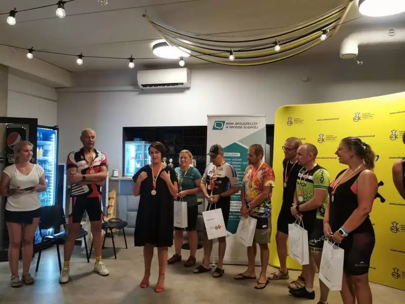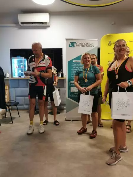 Na zakończenie trasy na wszystkich uczestników czekały pamiątkowe medale. Dodatkowo najlepsza trójka w kategorii mężczyzn i kobiet otrzymała vouchery od laboratoriów “Diagnostyka” w Środzie Śląskiej. Z kolei puchary dla zawodnika, który przejechał największą liczbę pętli, a także najstarszego i najmłodszego z największą liczbą kilometrów, ufundował Bank Spółdzielczy w Środzie Śląskiej.