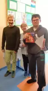 Nagrody i dyplomy wręczyli opiekunowie Klubu Europejskiego – Ewa Ek i Paweł Wenderski. Upominki ufundowała pani Ewa.