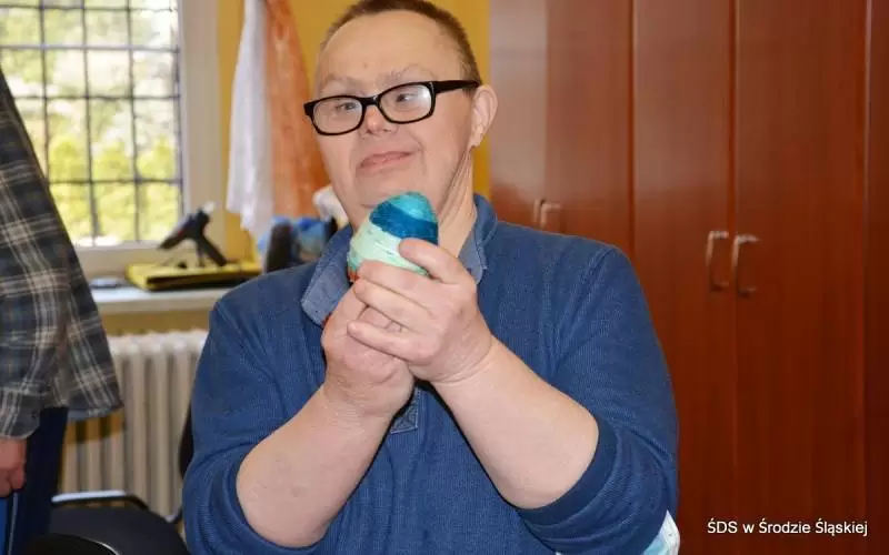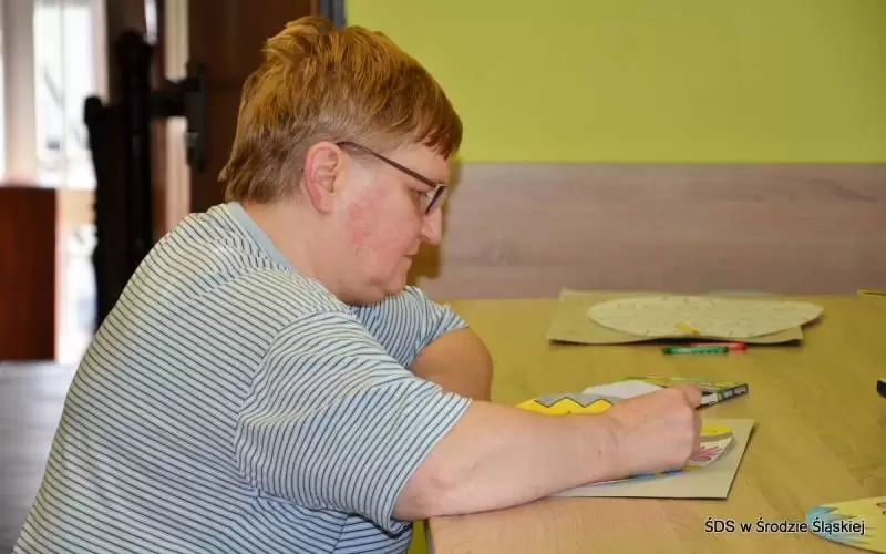 Kiedy odwiedziliśmy placówkę w Środzie Śląskiej akurat odbywały się zajęcia plastyczne, na których domownicy ozdabiali pisanki. W sali muzycznej trwały próby. Kadra i domownicy z prawdziwą radością oprowadzili nas po swoim domu, pokazując stworzone prace i opowiadając o procesie ich powstawania. W pracowni społecznej trwały konsultacje indywidualne. Tutaj podopieczni ŚDS uczą się m.in. pisać pisma urzędowe, umawiać na na e-poradę czy zarządzać swoim budżetem. - W naszej pracowni dyskutujemy też o bieżących wydarzeniach ze świata, sposobach rozwiązywania konfliktów, emocjach czy też dbaniu o siebie w czasie pandemii - informuje Małgorzata Michalska-Kuśnierz. Z wielkim przejęciem domownicy pokazali nam swoją nową matę interaktywną, z 40 różnymi grami i zabawami poprawiającymi sprawność ruchową. Dużym zainteresowaniem cieszy się również pracownia komputerowa.