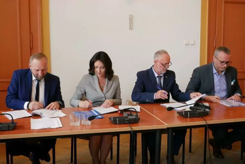 Dzisiaj w sali konferencyjnej Starostwa Powiatowego w Środzie Śląskiej miało miejsce podpisanie umów z wykonawcami przebudowy trzech powiatowych dróg. Zadanie otrzymało dofinansowanie w wysokości 12 mln zł z Rządowego Funduszu Polski Ład.