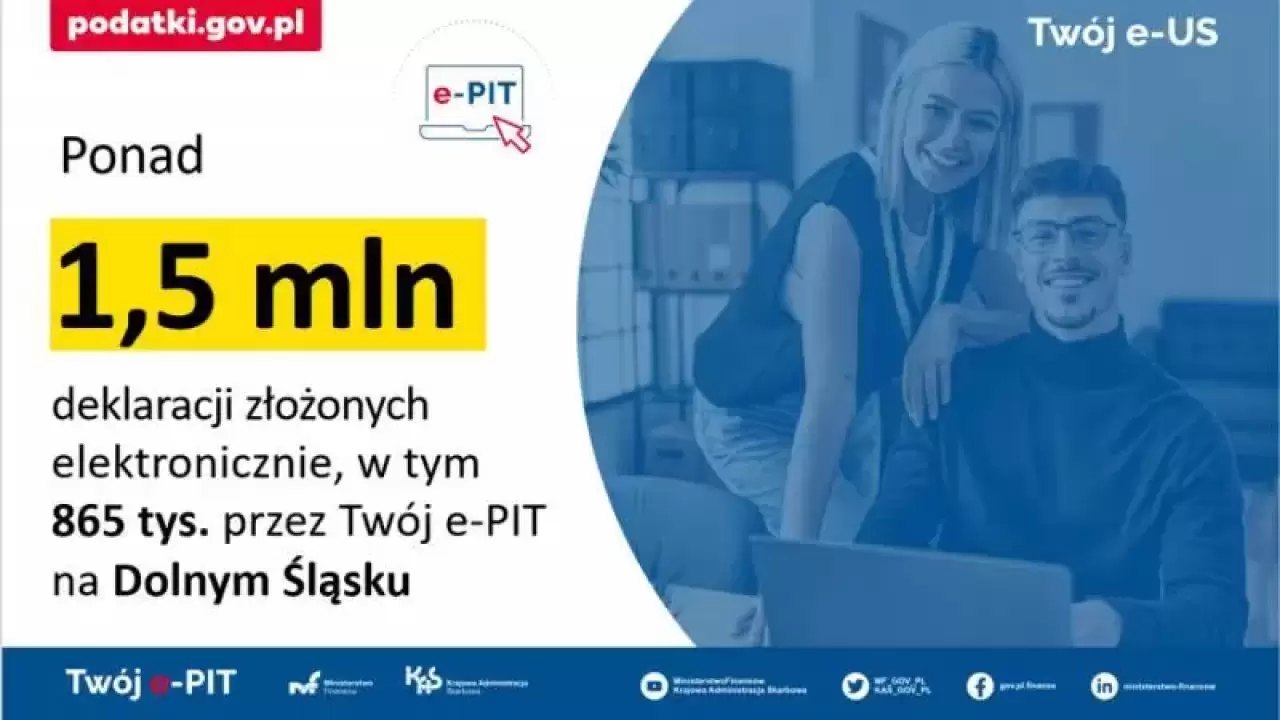 1,5 mln zeznań podatkowych złożonych elektronicznie pokazuje, że zainteresowanie tą formą rozliczenia z urzędem skarbowym stale rośnie. Podatnicy chętnie korzystają szczególnie z usługi Twój e-PIT. W tym roku przez tę usługę rozliczyło się 865 tys. Dolnoślązaków.