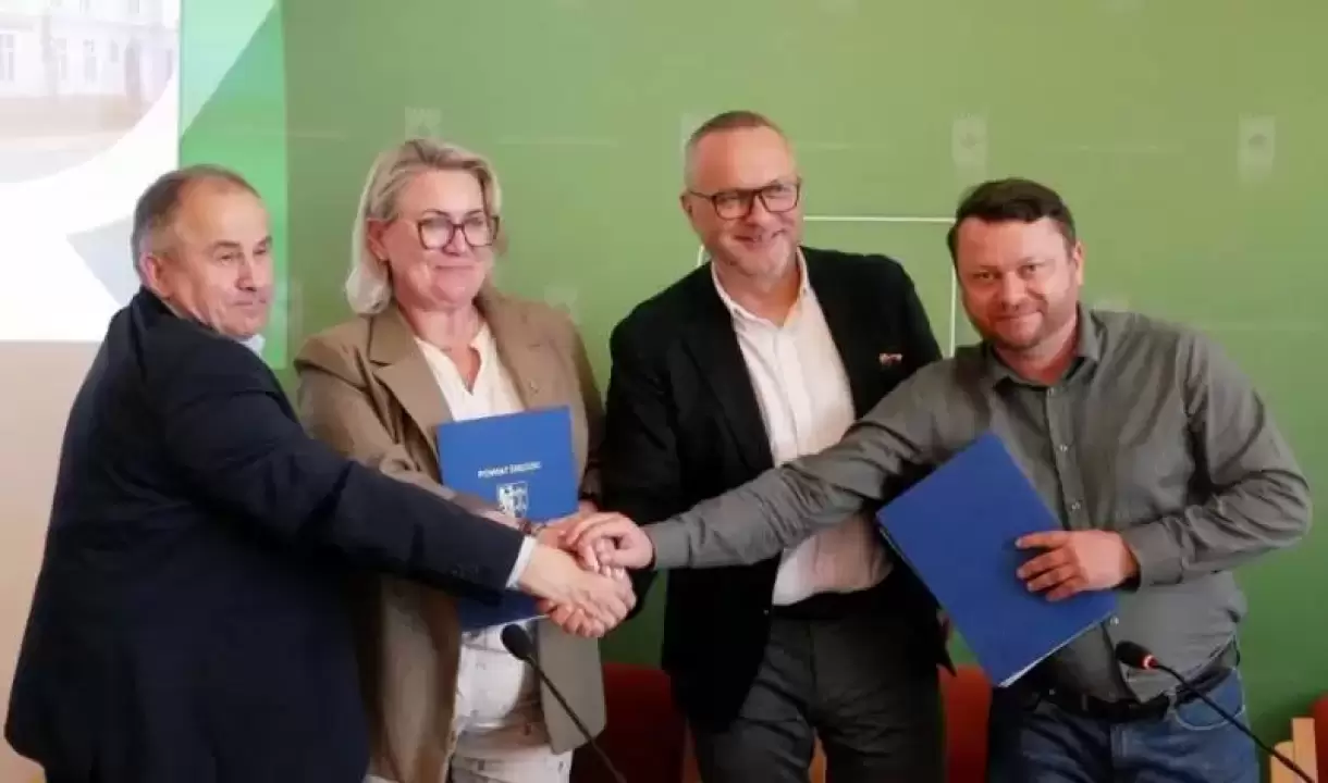 29 maja br. w siedzibie Starostwa Powiatowego w Środzie Śląskiej odbyło się uroczyste podpisanie umowy z wykonawcą inwestycji drogowej pn. „Przebudowa drogi powiatowej 2056D Księginice – Gąsiorów – Głoska”. Zadanie zostanie zrealizowane dzięki pozyskanemu dofinansowaniu z Rządowego Funduszu Rozwoju Dróg 2025.