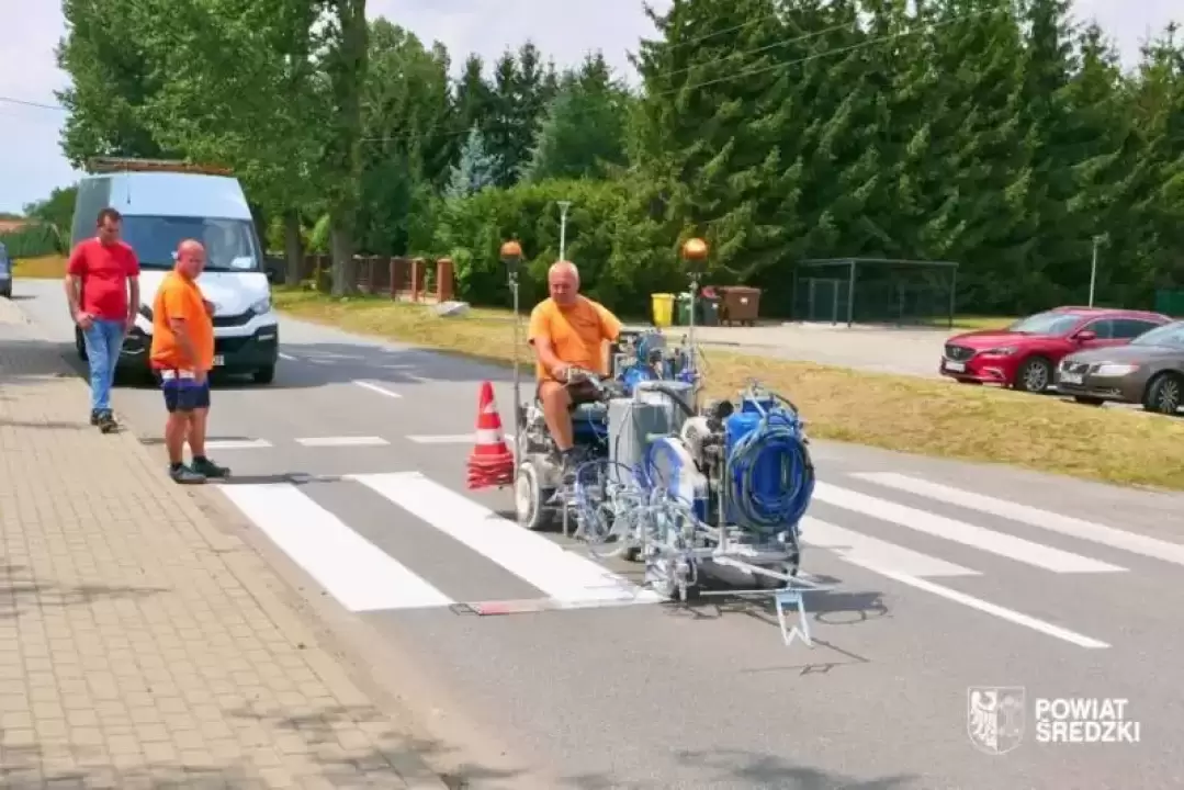 Powiat Średzki inwestuje w bezpieczeństwo na drogach – trwa malowanie oznakowania