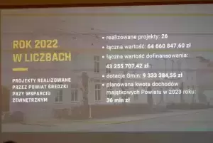 Informację przygotował i przedstawił zebranym Marcin Brzeziński, kierownik wydziału Rozwoju, Funduszy Zewnętrznych i Promocji Powiatu. Podstawowe dane za 2022 rok przedstawiają się następująco: