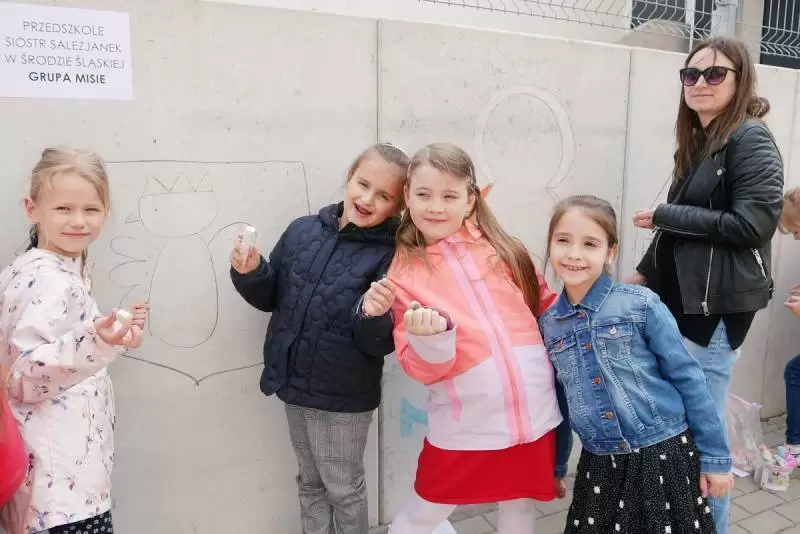 Wcześniej przedszkolaki i uczniowie z dziewięciu placówek z terenu powiatu stworzyli patriotyczny, kilkumetrowy mural przy powiatowym zespole szkół nr 1. Wszystkie grupy otrzymały dyplomy i słodką niespodziankę za zaangażowanie w tworzenie dzieła, a dodatkowo dwie wyróżniono nagrodą specjalną Muzeum Regionalnego w Środzie Śląskiej.