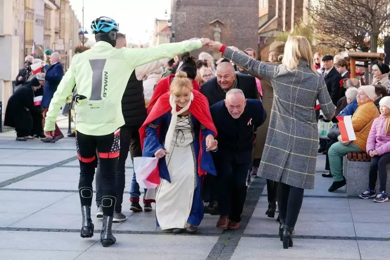 Obchody na rynku zakończył radosny i wielopokoleniowy Polonez dla Polski. Kolumnę poprowadziły panie z zespołu Niepierzynki z Mrozowa, a wśród tańczących znaleźli się samorządowcy, seniorzy, emeryci, radni, żołnierze, dyrektorzy jednostek, kolarze oraz najmłodsi mieszkańcy miasta z rodzicami. Bardzo chcieliśmy świętować ten dzień wspólnie i dzięki Wam to się udało!