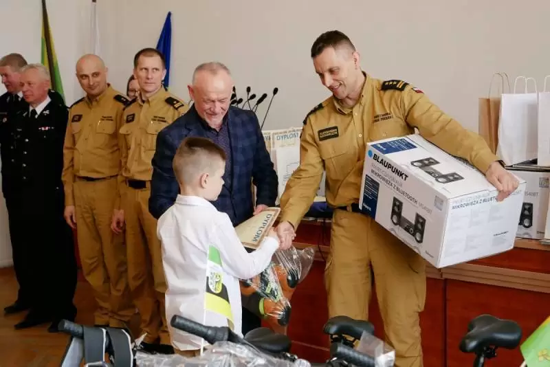 Zwycięzcy każdej kategorii otrzymali w nagrodę nowe rowery, ufundowane przez trzy instytucje - Powiat Średzki, Gminę Środa Śląska oraz Nadleśnictwo Miękinia. Dyplomy i upominki wręczyli przedstawiciele lokalnych władz, komendy powiatowej PSP oraz zarządu powiatowego związku OSP.