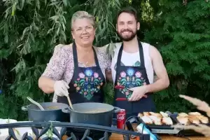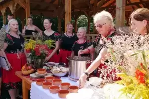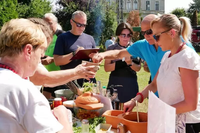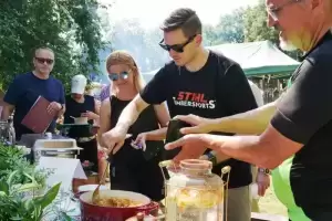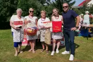 Na miejscu na rowerzystów czekała kiełbaska, owoce, smakowe lemoniady, a przede wszystkim pyszne dania serwowane przez uczestników konkursu. Wybór był różnorodny, bo pojawiały się zarówno potrawy tradycyjne, takie jak bigos, leczo i polędwiczki w sosie oraz te bardziej oryginalne, jak na przykład makaron ryżowy z dodatkami czy potrawka meksykańska. Komisja konkursowa stanęła przed nie lada wyzwaniem, jednak po zsumowaniu głosów zwyciężczyniami zostały panie z Koła Gospodyń Wiejskich w Szczepanowie, które do wspólnej zabawy powróciły po dłuższej przerwie - co bardzo nas cieszy.