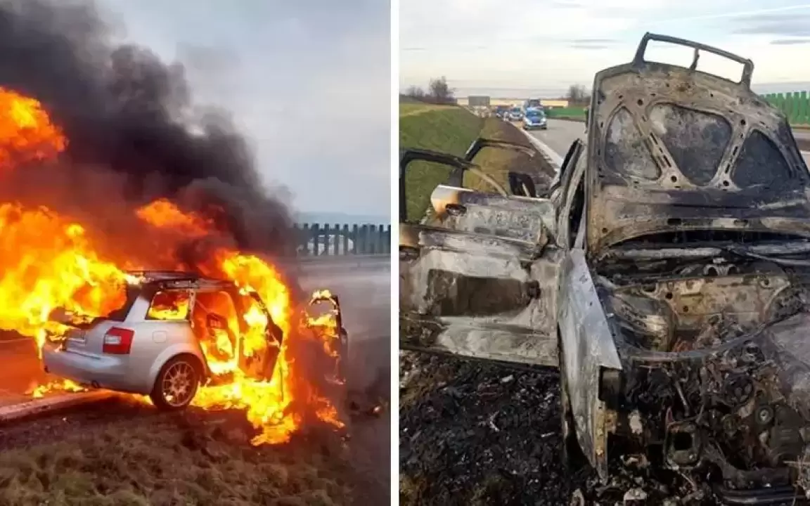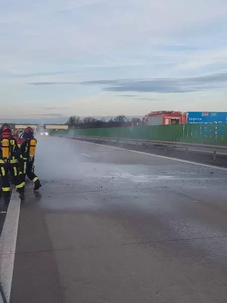 Dziś przed południem Dyżurny Stanowiska Kierowania Komendanta Powiatowego Państwowej Straży Pożarnej w Środzie Śląskiej przyjął zgłoszenie o pożarze samochodu na 115 km autostrady A4.