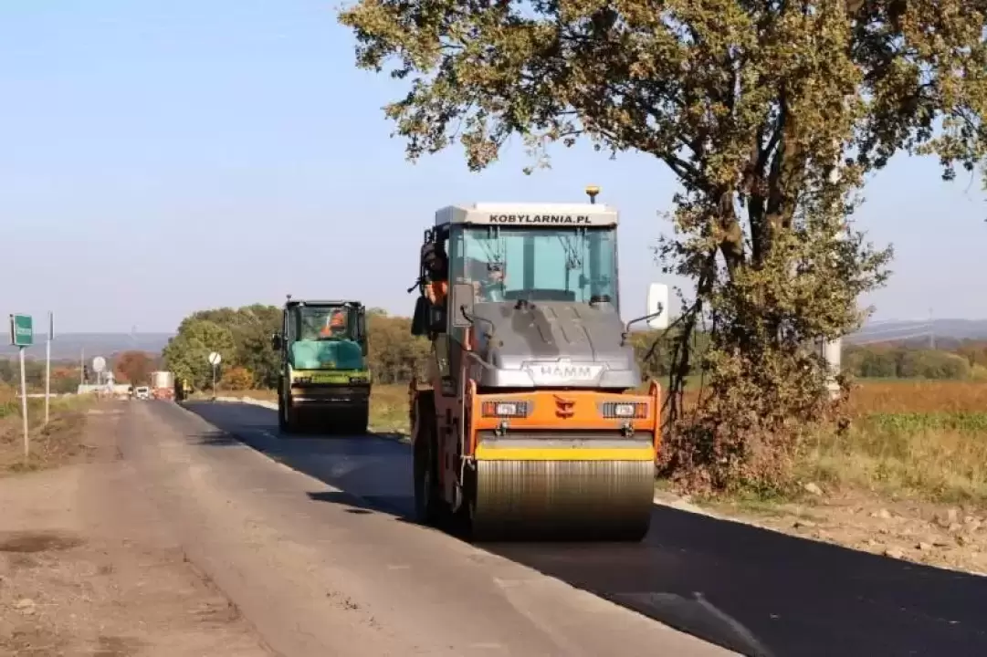 Nabiera tempa przebudowa drogi powiatowej nr 2052D na odcinku Brzezinka Średzka - Brzezina. Przed weekendem wykonawca - firma Kobylarnia - rozpoczęła układanie masy asfaltowej.