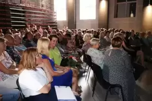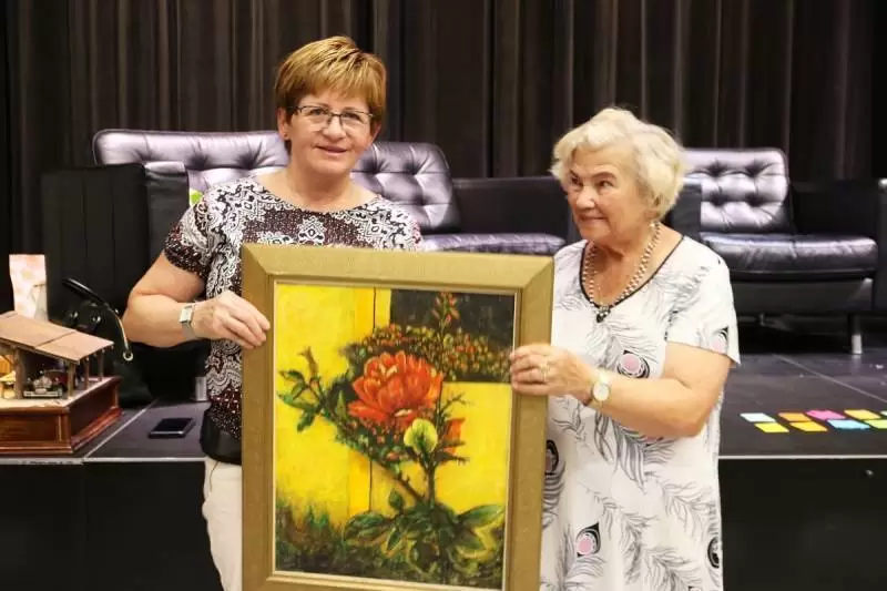 Gospodynią piątkowego wernisażu była Małgorzata Bogucka, która najpierw przybliżyła sylwetki i stopień pokrewieństwa pomiędzy członkami rodziny, a następnie delikatnie “odpytała” artystów. Publiczność, która bardzo licznie przybyła na wernisaż, dowiedziała się m.in. co skłoniło poszczególne osoby do zajęcia się twórczością, jak szukali najlepszej formy wyrażania siebie, ile czasu poświęcają swojej pasji, a także jak bogaty jest ich dorobek. – Moja przygoda z malowaniem zaczęła się ponad 30 lat temu. Postanowiłam namalować coś dla siebie, bo zawsze chciałam mieć dużo obrazów w domu. Ta praca bardzo spodobała się innej osobie. To było bardzo miłe i przekonało mnie do dalszego malowania. Na początku malowałam kredkami, później przeszłam na farby olejne. Z czasem zaczęłam malować portrety i one również zbierały pozytywne opinie – mówiła o swoich początkach seniorka rodu Mirosława Mróz.