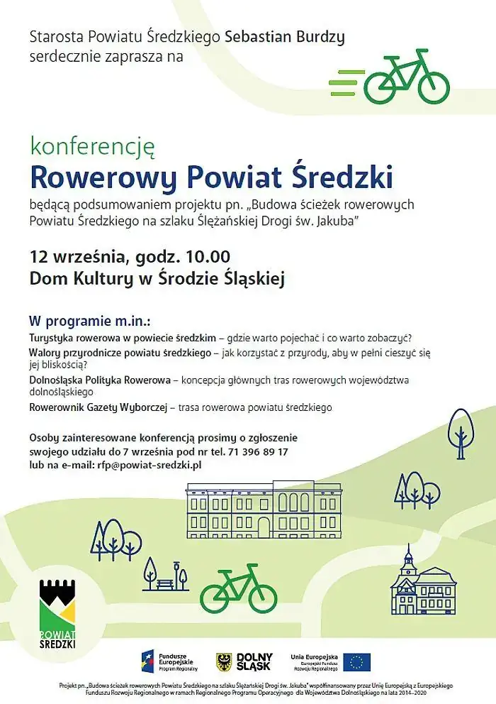 Zapraszamy sympatyków rowerów i wycieczek krajoznawczych na konferencję „Rowerowy Powiat Średzki”, która odbędzie się 12 września w Domu Kultury w Środzie Śląskiej.