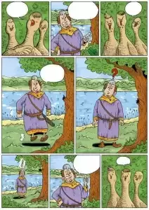 Czytelnikom pierwszego tomu, Wiesława przedstawiać nie trzeba. Tym, którzy z jego sympatyczną postacią będą mieli okazję zetknąć się po raz pierwszy, warto tylko wspomnieć, że ów woj słowiański poszczycić się może wyjątkowym talentem, do pakowania się w tarapaty... i to nie byle jakie! W pierwszym tomie stawić musiał czoła zagadce znikających jabłek, a później wywalczyć sobie drogę do serca wybranki. W drugiej odsłonie komiksu łatwiej na pewno nie będzie, albowiem wyruszyć on będzie musiał na poszukiwanie żywej wody, by uratować swego ojca przed nieuleczalną chorobą. W tym celu będzie musiał zmierzyć się ze złośliwym bagiennikiem, przechytrzyć gadające ptaki, a nawet zejść do bezkresnych labiryntów ukrytych wewnątrz Ślęży…
