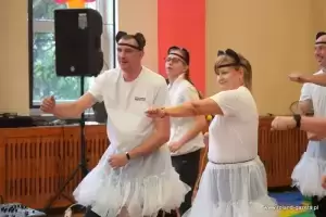 Pogoda nie była dziś zbyt przyjazna, więc impreza odbyła się w sali, co nie stanowiło żadnej przeszkody w tym, by się udała. Był poczęstunek, także z grilla, dużo pozytywnych emocji i prezentacje, które zachęciły do wspólnej zabawy i ruchowej aktywności także zaproszonych licznych gości.