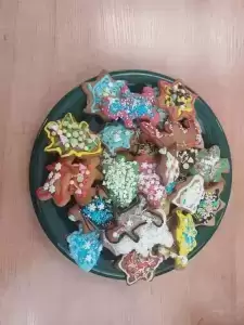 Święty Mikołaj wraz z elfem rozdawali olbrzymie prezenty, które ufundowali dla naszego koła Państwo Alicja i Sebastian Hellonowie. Bardzo serdecznie dziękujemy naszym wspaniałym Darczyńcom. Nasi uczniowie mieli również okazję spróbować pierników, które upiekli członkowie Koła języka niemieckiego, a ozdobiły dzieci z koła plastycznego.