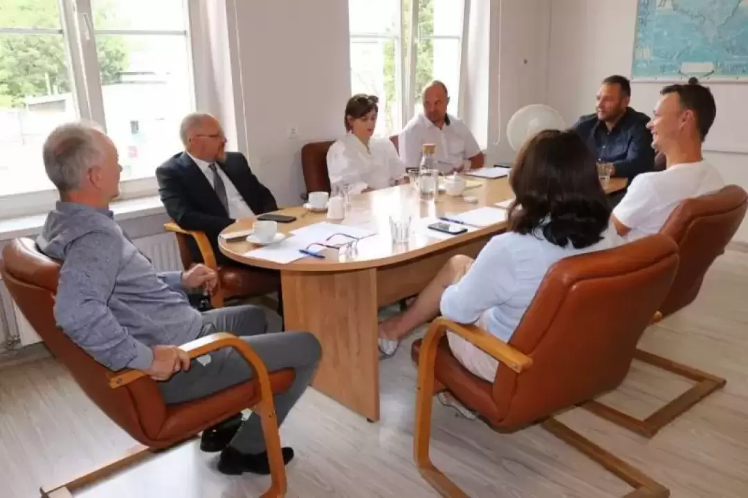 W ubiegłym tygodniu w gabinecie starosty odbyło się spotkanie z włodarzami gmin i przedstawicielem Banku Gospodarstwa Krajowego w sprawie wspólnych inwestycji dofinansowanych z Rządowego Funduszu Polski Ład.