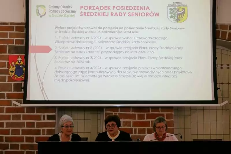Radni jednogłośnie podjęli uchwały w sprawie wyboru Przewodniczącego, Wiceprzewodniczącego i Sekretarza Średzkiej Rady Seniorów, przyjęcia planu pracy na 2024 rok oraz kadencję 2024-2029, a także w sprawie projektu wolontariackiego uczniów Powiatowego Zespołu Szkół nr 2 w Środzie Śląskiej. Ostatnią uchwałę przybliżył zebranym dyrektor placówki Mariusz Kargol. Wolontariat będzie polegał na przeprowadzeniu zajęć komputerowych dla seniorów przy wsparciu uczniów PZS nr 2.