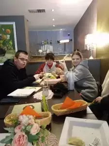 Bardzo ważnym punktem naszej wizyty było zwiedzenie sklepu z wyrobami świątecznymi, który jest czynny cały rok. Po południu odwiedziliśmy jedną z małych restauracji i posililiśmy się obiadem. Po posiłku udało nam się jeszcze zrobić świąteczne zakupy City- Center.