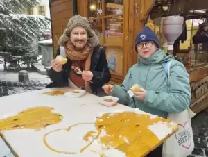 W centrum miasta w górnym rynku mieliśmy okazję zobaczyć lodowisko, na którym swoje umiejętności ćwiczyły dzieci i ich rodzice. Tu też zobaczyliśmy liczne stoiska z rękodziełem, kadzidełkami, miodami, serami i słodyczami. Po drodze na rynek dolny odwiedziliśmy znany nam Sklep z musztardą, gdzie można zakupić wyroby o wyszukanych smakach. Oczywiście zaopatrzyliśmy się w musztardy świąteczne. Na dolnym rynku było wiele stanowisk z tradycyjnymi potrawami – kiełbaskami z rusztu, plackami, ciastami, langoszem.