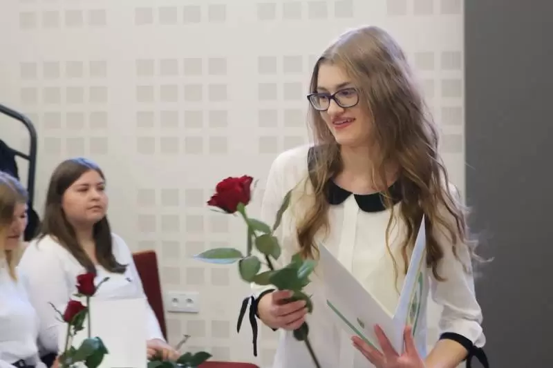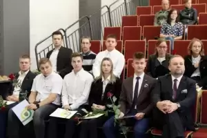 Zebranych przywitał wicestarosta Sebastian Burdzy. – Już 15 lat mam przyjemność uczestniczyć w uroczystości wręczenia powiatowych stypendiów. Takie dni jak dzisiejszy to jeden z przyjemniejszych aspektów pracy samorządowca. W tym roku stypendia otrzymało 26 uczniów, to rekordowa liczba, lecz bez wątpienia są to najlepiej wydane, a właściwie zainwestowane, pieniądze – mówił wicestarosta.