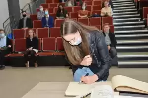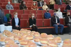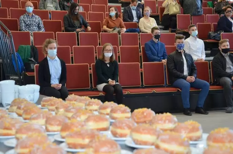 Wszyscy nagrodzeni wczoraj uczniowie wpisali się do Złotej Księgi Stypendystów Powiatu Średzkiego, która w tej chwili składa się z trzech obszernych kronik i liczy 214 nazwisk! Zgodnie ze zwyczajem nie zabrakło też wspólnej fotografii i pysznych pączków.