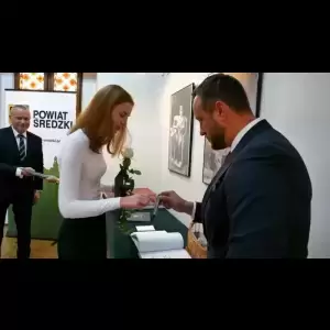 Stypendyści tradycyjnie wpisali się do Złotej Księgi Stypendystów Powiatu Średzkiego, która liczy już ponad 300 nazwisk.