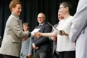 Przedstawiciele Powiatu podziękowali dyrekcji i gronu pedagogicznemu za ich codzienne zaangażowanie, profesjonalizm oraz wkład w rozwój młodego pokolenia. Abiturientom pogratulowali zakończenia ważnego etapu edukacji i kroku w kolejny, a wśród przekazanych im życzeń znalazła się odwaga w wyznaczaniu celów, wytrwałość i wiara w swoje możliwości.