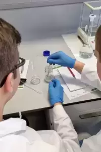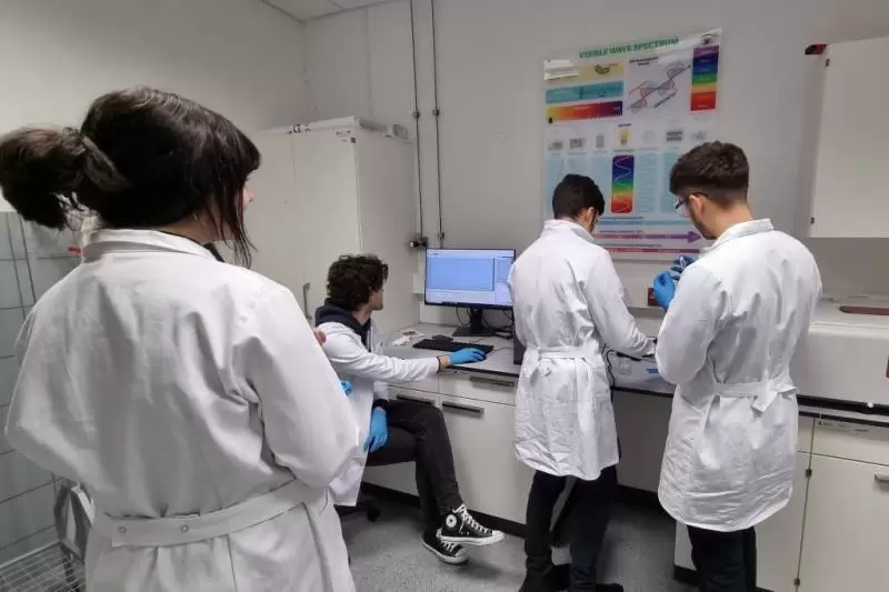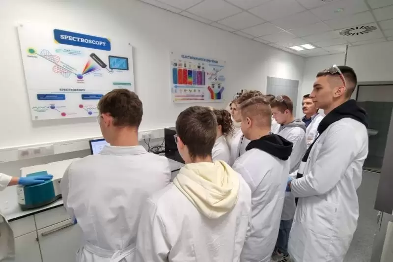 Maturzyści spędzili łącznie w Polskim Ośrodku Rozwoju Technologii dwa dni - piątek 18 listopada oraz piątek 25 listopada. W trakcie zajęć omówili tematy spektroskopii i analizy widmowej. - W laboratorium zaczęli od działań matematycznych, dzięki którym mogli stworzyć odpowiednie mieszaniny, obecne w dalszych doświadczeniach. Różne stężenia roztworu zostały poddane na działanie światła UV, przez co dostrzeżono charakterystyczny fluorescencyjny, niebieski kolor. Praca i nabyta wiedza uczniów została sprawdzona, podczas wyznaczania krzywych wzorcowych na bazie pomiarów - opisują pierwszy dzień w ośrodku opiekunowie uczniów, Barbara Honc i Dariusz Muchorowski.