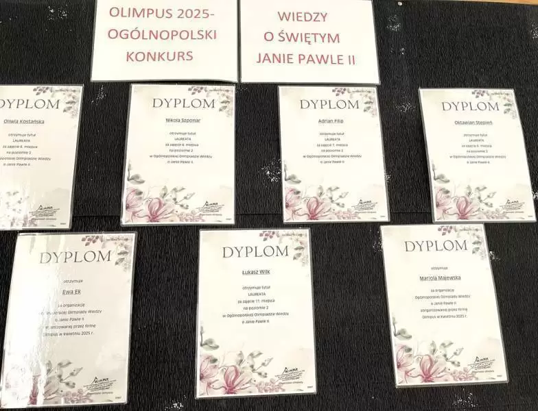 27 czerwca w Specjalnym Ośrodku Szkolno-Wychowawczym im. Janusza Korczaka w Środzie Śląskiej ogłoszono wyniki Ogólnopolskiego Konkursu Wiedzy o Papieżu Świętym Janie Pawle II – Olimpus 2025. Uczniów uhonorowano dyplomami i nagrodami za wspaniałe osiągnięcia.