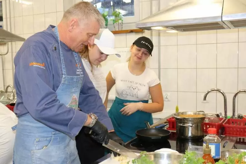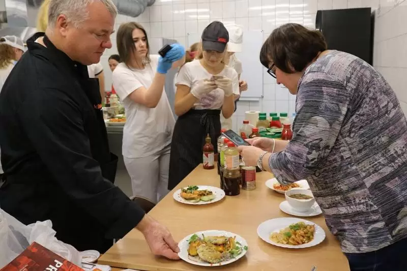 Uczniowie, bazując na produktach marki Develey, przygotowali pod okiem szefa kuchni orientalne dania, m.in. rybę z selera, tatara z pulpy pomidorowej, makaron z krewetkami i grillowane jabłka w sosie. Paweł Filipiak zaprezentował młodzieży poprawny sposób krojenia ryby, zdradził sekret idealnego bulionu oraz wyjaśnił, w jaki sposób nałożyć danie na talerz, aby prezentowało się elegancko. Na koniec wspólnie przystąpiono do degustacji przygotowanych potraw.