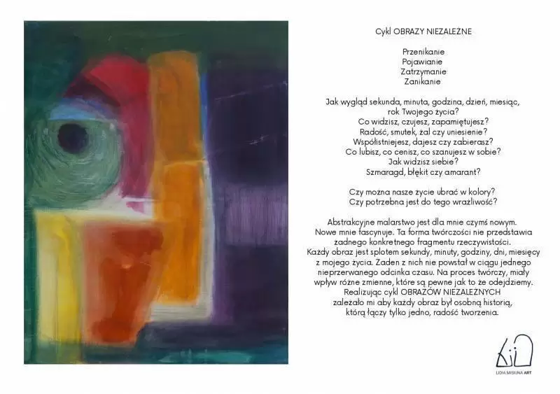 Wystawa malarska w wyjątkowy sposób ukazuje cykl obrazów abstrakcyjnych, jest niezwykłą opowieścią autorki o czasie, trwaniu i przemijaniu, a także o tym, jak ważne są kolory w naszym życiu.