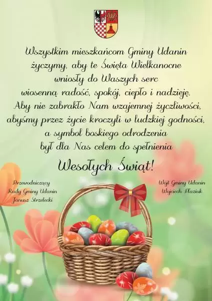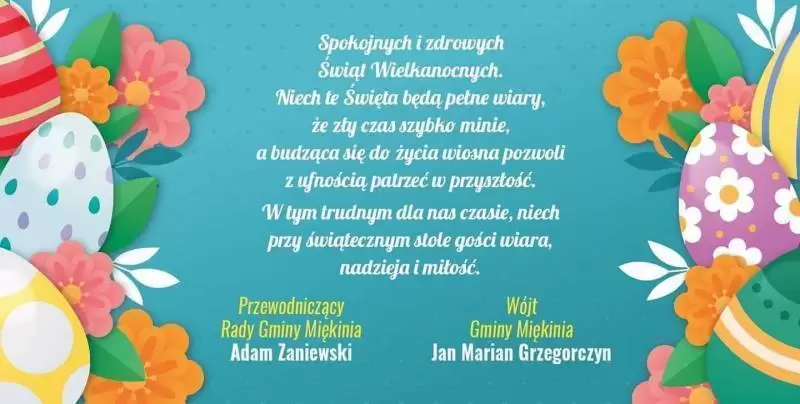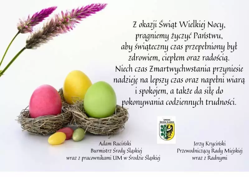 Życzenia pełne ciepłych słów z okazji Świąt Wielkiej Nocy składają Państwu przedstawiciele gmin i powiatu średzkiego.