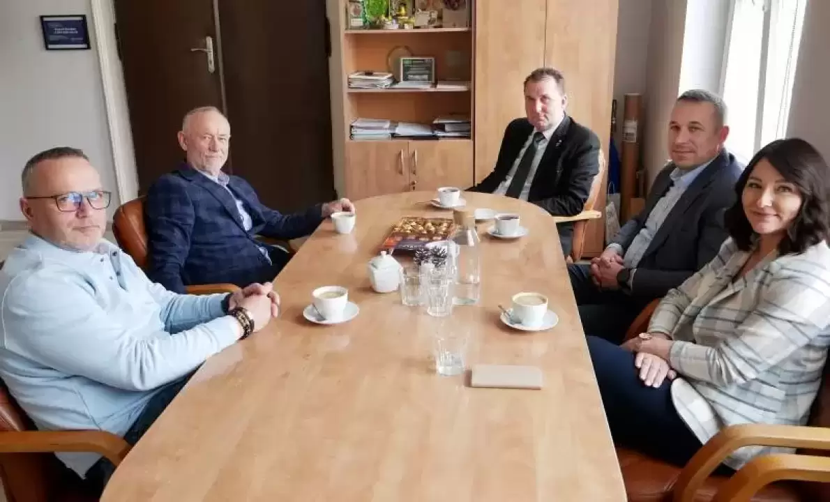 Wiceminister infrastruktury Paweł Gancarz odwiedził w ubiegły piątek średzkie starostwo i spotkał się z włodarzami powiatu - Krzysztofem Szałankiewiczem, Sebastianem Burdzym, Grzegorzem Pierzchalskim i Elżbietą Czarnotą.