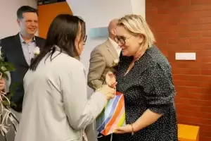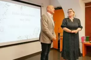 Dzisiaj przedstawiciele Powiatu Średzkiego - wicestarosta Honorata Dulska i przewodniczący rady Artur Bogucki - wzięli udział w spotkaniu z okazji Dnia Bibliotekarza i Bibliotek.