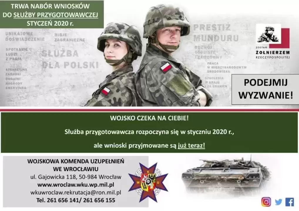 Więcej informacji o naborze i specyfice służby przygotowawczej znajdziesz na naszej stronie internetowej: wkuwroclaw.wp.mil.pl