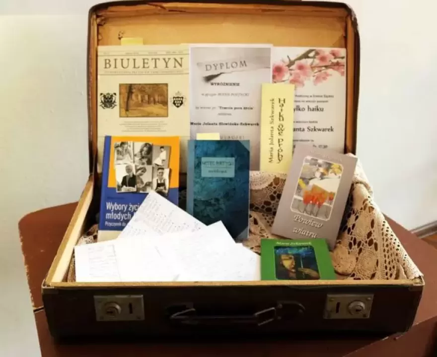 – Ta wystawa to kolejny rozdział opowieści o naszej lokalnej, cenionej poetce, bo tak długo istnieje człowiek, jak długo trwa opowieść o nim. Wiersze Marii pozostaną na zawsze na papierze, lecz Maria, jako kobieta i poetka, też pozostanie w naszej pamięci – mówi Małgorzata Bogucka, jedna z kuratorek wystawy. Drugą jest córka poetki - Magdalena Szkwarek. Dzięki staraniom obu pań na wystawie można obejrzeć m.in. fotografie pisarki, otrzymane dyplomy i wyróżnienia, wycinki prasowe i oczywiście poczytać jej wiersze. W walizce wspomnień nie brakuje autorskich tomików poezji.