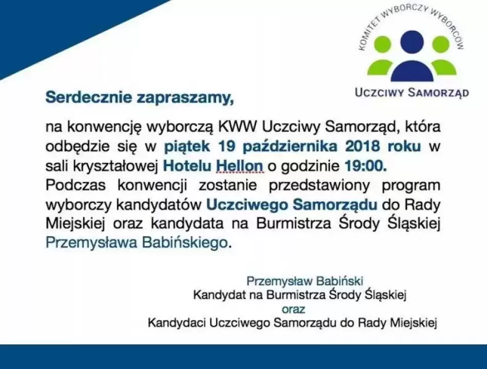 Zaproszenie na konwencję wyborczą KWW Uczciwy Samorząd