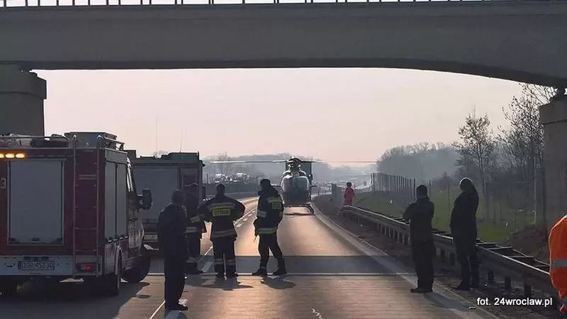 Na autostradzie lądowało Lotnicze Pogotowie Ratunkowe, które zabrało poszkodowanego w stanie krytycznym do szpitala.