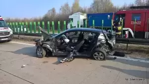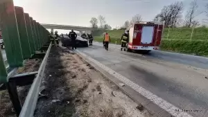 Prawdopodobnie kierujący w skutek utraty panowania nad pojazdem marki Renault Megane uderzył w bariery oddzielające pas ruchu, następnie dachował. Samochodem podróżowały trzy osoby, jedna z nich została zaklinowana w pojeździe. Działania mające na celu wydobycie poszkodowanego kierowcy z pojazdu prowadzili strażacy.
