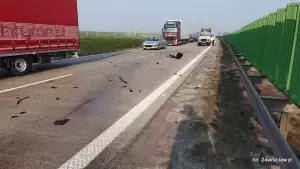 Dziś w godzinach porannych, na 130 km autostrady A4, pomiędzy węzłami Kostomłoty – Kąty Wrocławskie miał miejsce wypadek drogowy.